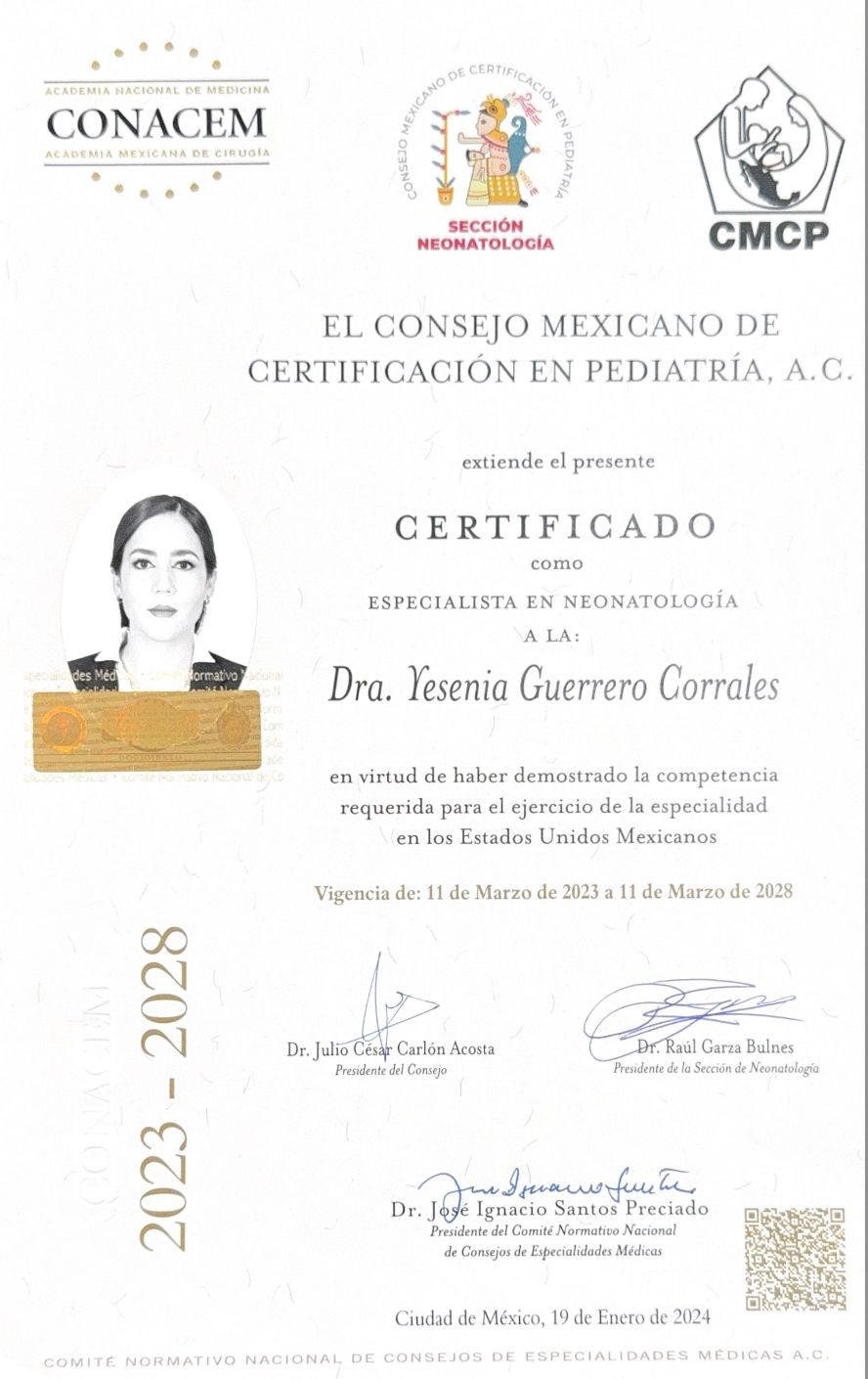 Alta especialidad en Cuidados Intensivos del Recién nacido critico.