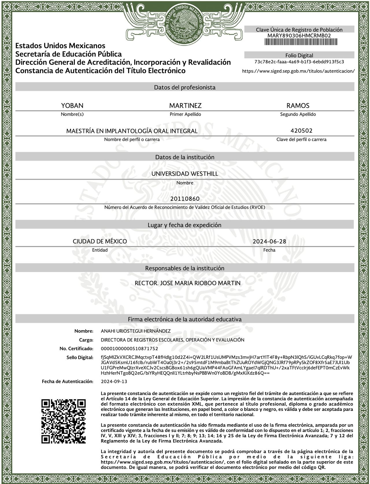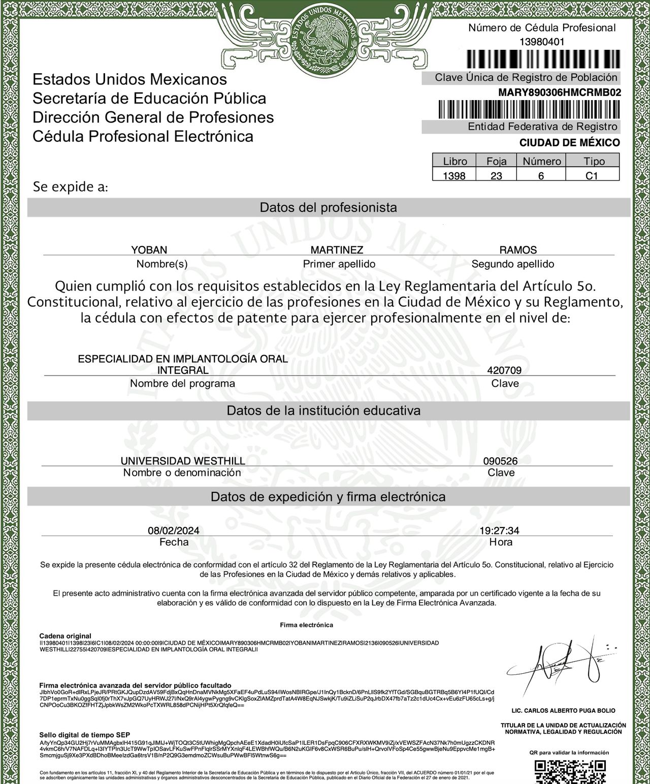 Hola, mi nombre es Yoban Martinez Ramos Soy especialista en Implantología Oral y cuento con una Maestría en Implantología, lo que me ha permitido desarrollar una formación avanzada en el diagnóstico, planificación y ejecución de tratamientos implantológicos de alta complejidad.