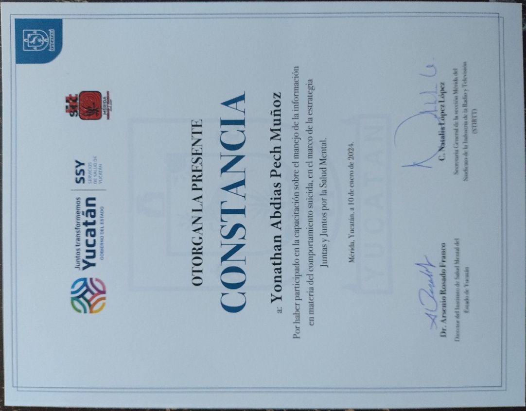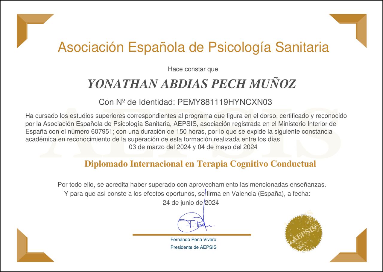 Hola, soy Yonathan Pech Muñoz, psicólogo clínico. Atiendo a jóvenes y personas adultas en un espacio de confianza, donde trabajamos juntos para afrontar la ansiedad, la depresión, el estrés, el riesgo suicida y otros desafíos emocionales. Utilizo los enfoques cognitivo-conductual y terapias contextuales. Mi objetivo es ayudarte a comprender lo que estás viviendo y acompañarte en el proceso de sentirte mejor.