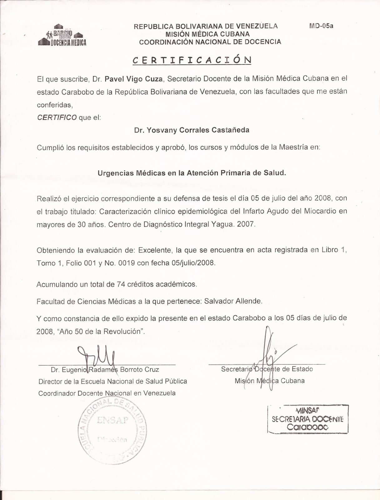 Además, cuento con experiencia en cuidados críticos adquirida en unidades de terapia intensiva, así como en gestión sanitaria y docencia médica. He desempeñado funciones académicas y administrativas en instituciones dedicadas a la formación en salud.