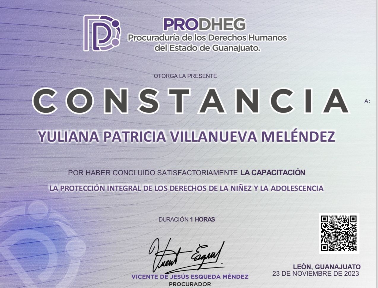 ¡Hola! Soy Yuliana Villanueva, licenciada en psicología por la Universidad Iberoamericana León, maestra en terapia cognitivo conductual por el Centro de Terapia Cognitiva, además cuento con diversos diplomados, entre ellos, tanatología.