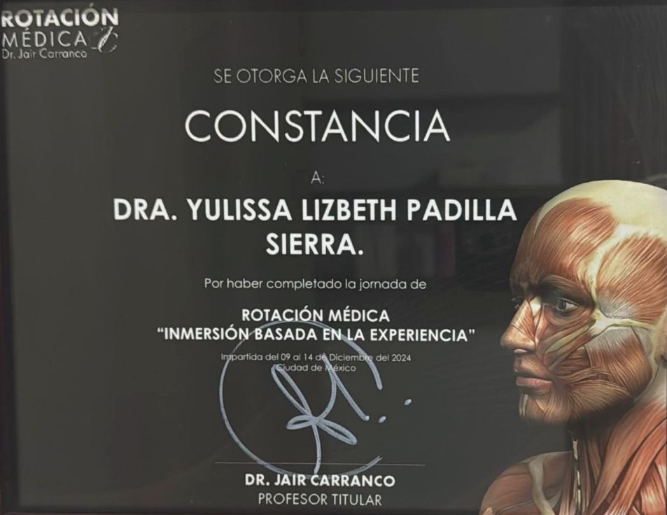 Entre mis actividades más recientes destacan mi participación en el Diplomado en Actualización en Medicina General impartido por MeducationMX y una rotación médica especializada con el Dr. Jair Carranco, reforzando mi compromiso con la actualización continua y la práctica médica de calidad.