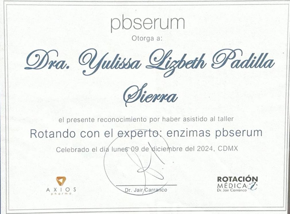 Soy la Dra. Yulissa Padilla Sierra soy Médico Cirujano General egresada de la Facultad de Estudios Superiores Zaragoza de la UNAM. Realizó mi internado médico en el Hospital General de Zona No. 29 del IMSS y complete mi servicio social en el programa “Salud en tu Casa” de la Secretaría de Salud de la Ciudad de México.