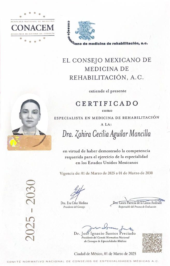 Soy médica especialista en Rehabilitación, con formación en investigación clínica y actualmente en formación en Alta Especialidad en Rehabilitación Ortopédica. Trabajo con un enfoque integral y basado en evidencia para mejorar la funcionalidad, movilidad y calidad de vida de mis pacientes. Atiendo personas con afecciones musculoesqueléticas, postoperatorias y neurológicas mediante tratamientos personalizados y terapias con fundamento científico.