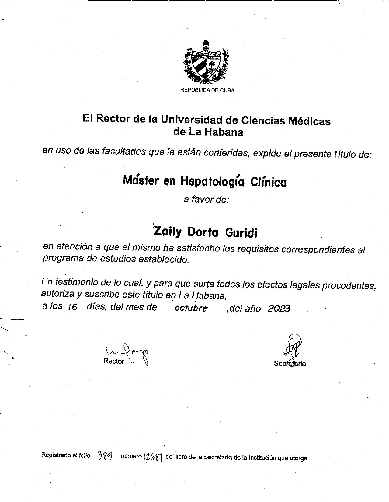 Soy la doctora Zaily Dorta Guridi, especialista en Gastroenterología con doctorado en ciencias médicas, y master en infectología y hepatología.