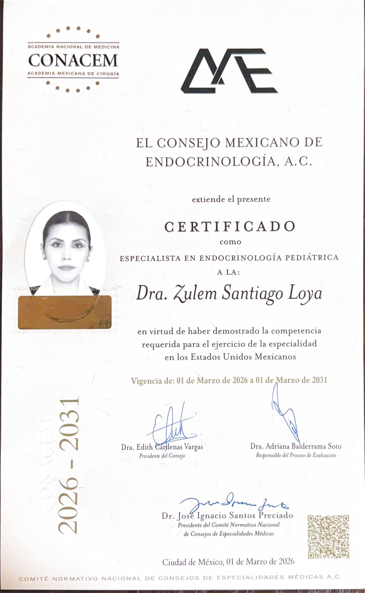 Certificada por el Consejo Mexicano de Endocrinología y Consejo Mexicano de Certificación en Pediatría