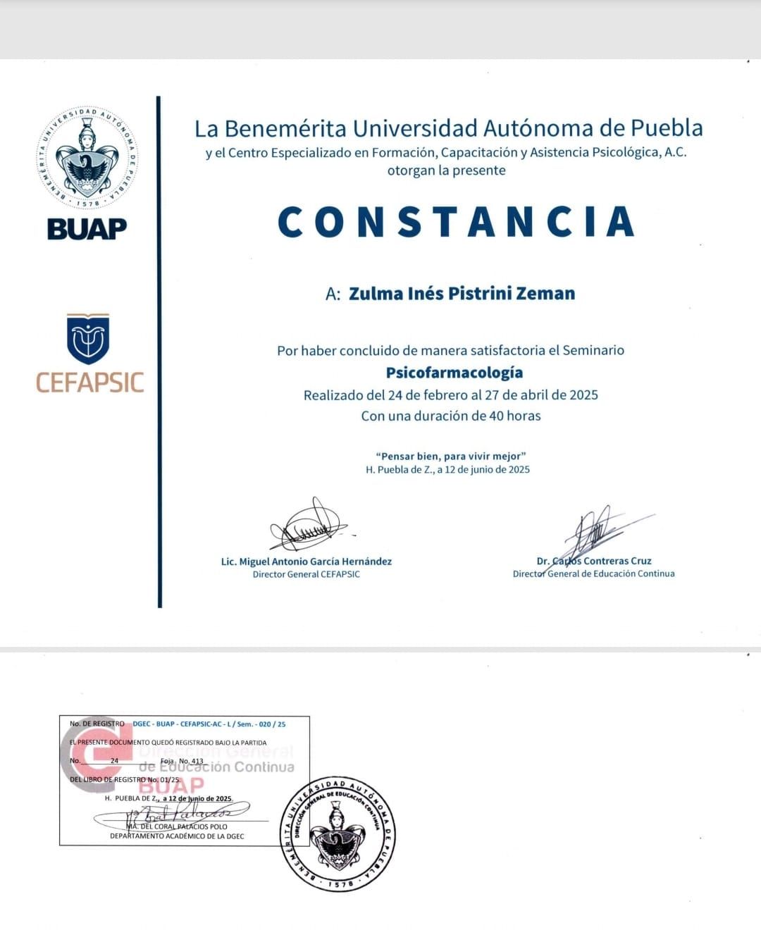 • Lic. Zulma Pistrini Zeman • Primera visita Psicología •